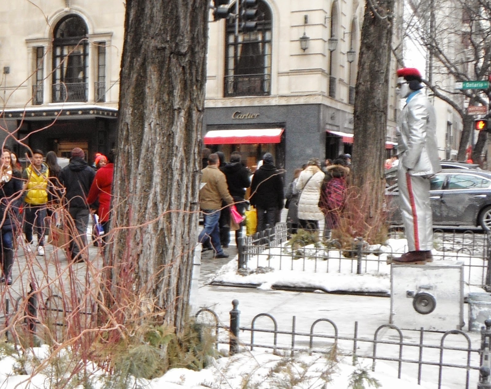 The Tin Man, working. In costume. In winter. In Chicago. |